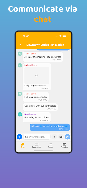• แชทแบบมืออาชีพตามโครงการ: สื่อสารกับทีมและผู้รับเหมาช่วงของคุณในการสนทนาเฉพาะสำหรับแต่ละไซต์