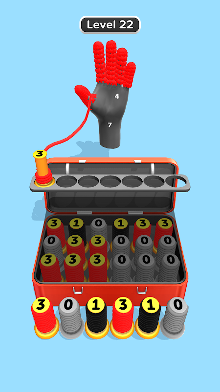 รูปแบบการเล่นนั้นเรียบง่ายแต่ชวนติดตาม แตะที่หลอดด้ายด้านหน้าของแถวใดๆ เพื่อส่งไปยังพื้นที่รวมด้าย เมื่อคุณจัดเรียงหลอดด้ายสามหลอดที่มีหมายเลขเดียวกัน หลอดด้ายเหล่านั้นจะรวมเข้าเป็นหลอดที่มีหมายเลขสูงกว่า โดยจะเปลี่ยนสีและลวดลายในระหว่างนั้น