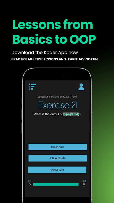 Koder แตกต่างจากหลักสูตรเทอะทะหรือบทช่วยสอนที่น่าเบื่อตรงที่เน้นการฝึกฝนแบบลงมือปฏิบัติจริง เรียนรู้จากการลงมือปฏิบัติ และทำให้ทักษะ Python ของคุณแข็งแกร่งขึ้นเร็วขึ้น