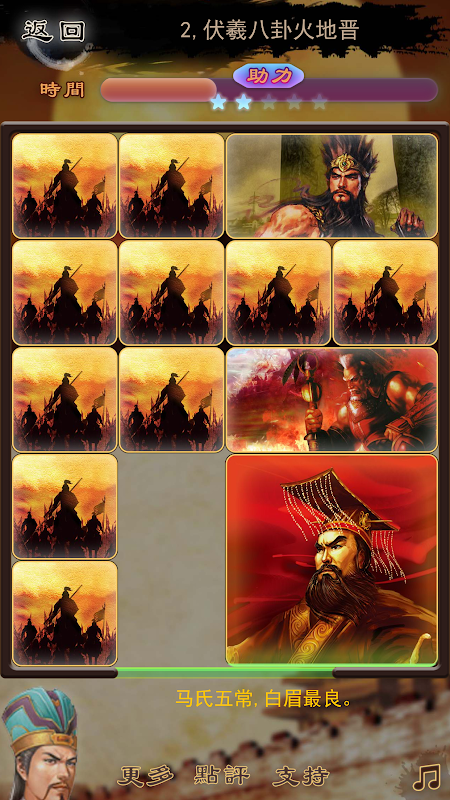 ช่วยเหลือวีรบุรุษ Cao Cao คุณต้องบันทึก Cao Cao คงทราบเรื่องราวประวัติศาสตร์ของ huarong ในเกมนี้ คุณต้องย้ายบล็อกสี่เหลี่ยมที่ใหญ่ที่สุดของ Cao Cao ออก สามารถเล่นเกมสบาย ๆ ง่าย โดยเลื่อนกล่องเกม และรับสี่เหลี่ยมใหญ่ที่สุดในเกม นี้ไม่ได้จึงง่าย ล้อมรอบ ด้วยศัตรูอื่น ๆ ในเกม