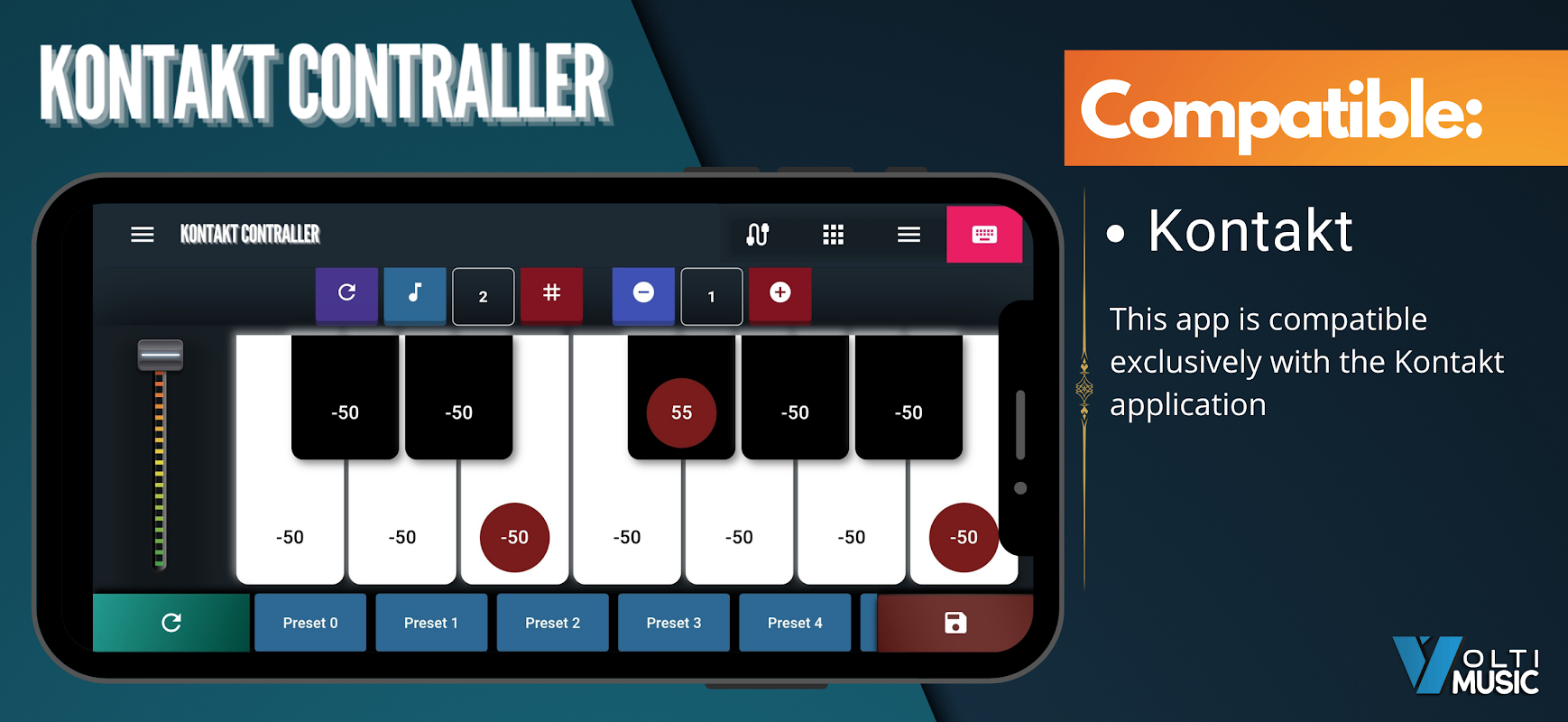 Kontakt Smart Controller ช่วยให้คุณควบคุมเสียงธนาคารทรานสโพสออคเทฟและอื่น ๆ สำหรับ Kontakt (Native Instrument) ผ่านมือถือของคุณด้วยอินเทอร์เฟซกราฟิกที่ใช้งานง่าย
