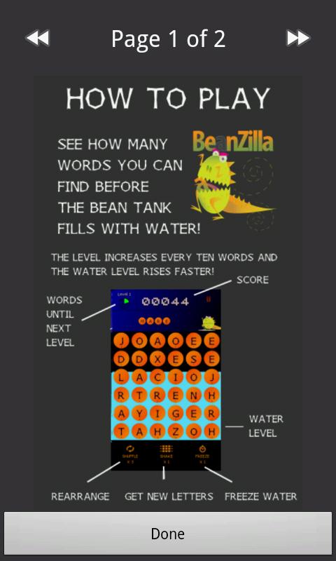 BeanZilla Korea is a boggle style arcade game in Korean! This is a Korean Language version of the popular BeanZilla app - find Korean words by assembling jamo or hagul characters characters. 4 Exciting Boggle games! Play BeanZilla Jamo Boggle or BeanZilla Hangul Boggle and get your score on our global Leaderboard!