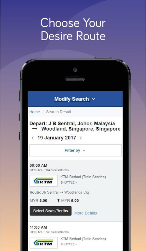 KTMB app let you plan, book tickets from the train networks between Singapore to Padang Besar (Perlis) Malaysia and get posted with the latest notification and alerts on your booked train travel.