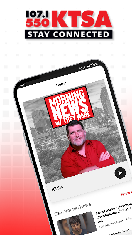 แอพมือถือ KTSA นำพลังและความตื่นเต้นของ KTSA มาสู่ปลายนิ้วของคุณ ไม่ว่าคุณจะฟังสตรีมสดหรือพอดแคสต์ตามต้องการ ด้วยแอป KTSA คุณสามารถเข้าถึงรายการและข่าวเพลงของเราได้ทุกเมื่อที่คุณต้องการ! นั่นหมายความว่าคุณสามารถนำ Trey Ware, Sean Rima, Markley van Camp & Robbins และอาหารโปรดอื่นๆ ติดตัวไปได้ทุกที่