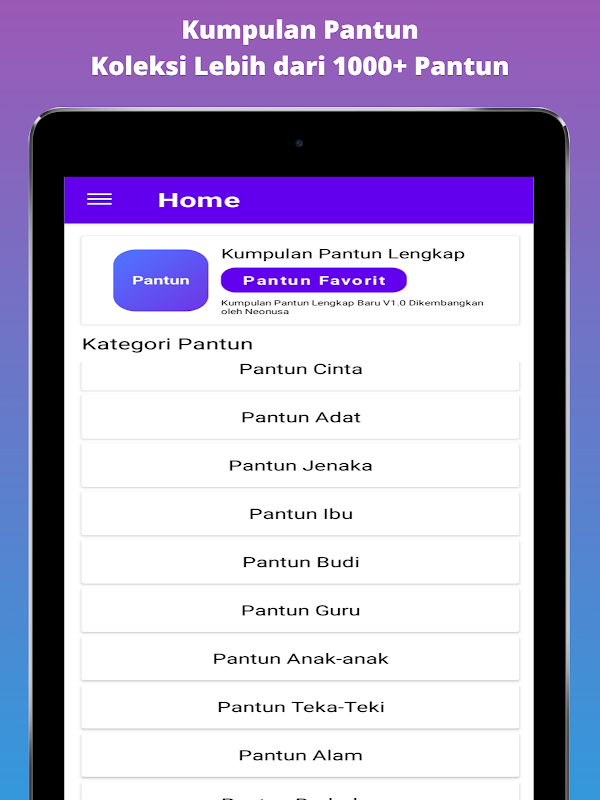 แอปพลิเคชั่น "New Complete Collection of Pantun" มีบทกวีในหมวดหมู่ต่าง ๆ ค้นหาบทกวีทุกประเภทที่คุณต้องการที่นี่