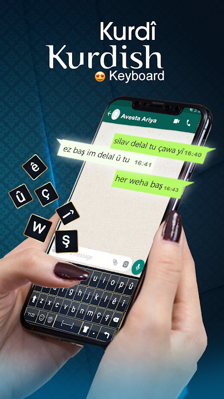 รูปแบบแป้นพิมพ์ภาษาที่นำมาใช้คือรูปแบบแป้นพิมพ์ QWERTY ของทั้งตัวอักษรเคิร์ดและอักษรภาษาอังกฤษ แป้นพิมพ์ภาษาเคิร์ด - แป้นพิมพ์พิมพ์ดีดของชาวเคิร์ดสร้างขึ้นด้วยคุณสมบัติการแนะนำคำที่จะให้คำแนะนำแก่คุณที่ด้านบนของแป้นพิมพ์ในขณะที่พิมพ์การสะกดคำภาษาเคิร์ดและการสะกดภาษาอังกฤษ เขียนตัวอักษรเคิร์ดและคำภาษาอังกฤษทั้งหมดในข้อความพิมพ์บนมือถือของคุณได้อย่างง่ายดายโดยใช้แป้นพิมพ์ภาษาอังกฤษแบบเคิร์ดนี้ แป้นพิมพ์ภาษาเคิร์ด - แป้นพิมพ์การพิมพ์ภาษาเคิร์ดช่วยให้คุณพิมพ์ตัวอักษรภาษาอังกฤษได้ คุณสามารถพิมพ์และส่งอีเมลเป็นภาษาเคิร์ดและอังกฤษพิมพ์ข้อความเป็นตัวอักษรเคิร์ดและตัวอักษรภาษาอังกฤษในแอปสำหรับพิมพ์นี้