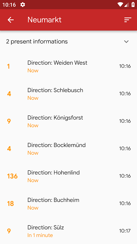 เวลาออกเดินทางสดสำหรับการโดยสารสาธารณะในโคโลญ