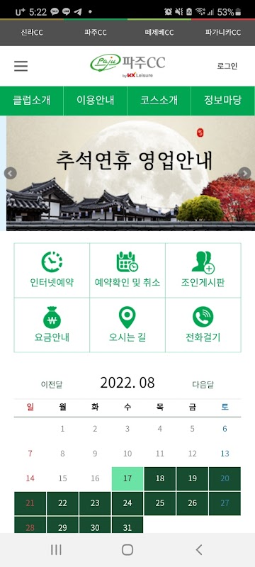 Paju Country Club ตั้งอยู่ที่เชิงเขา Jawongsan ในเมือง Paju ละลายตามธรรมชาติเป็นภูเขาล้อมรอบด้วยหน้าจอพับ