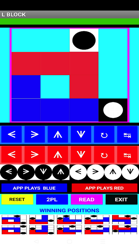 เลื่อน L สีน้ำเงินหรือสีแดง จากนั้นเลื่อนปุ่มบล็อกกลางเพื่อวางชิ้นส่วน จากนั้นกดปุ่มสีแดง [APP PLAYS RED] / [BLUE PLAYS RED] เพื่อให้คอมพิวเตอร์เคลื่อนที่
