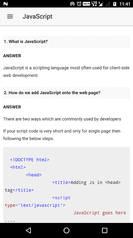 Application contains JavaScript basic, Javascript tutorial and interview questions, JS Beginners.
