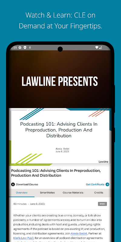 รับและติดตาม CLE ของคุณไปที่ได้รับรางวัลชนะเลิศ Lawline ของ app มือถือ