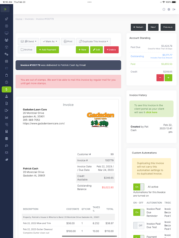 แอพของ LawnPro Software จะทำให้คุณเป็นผู้ควบคุมเวลา การจัดตารางเวลา ค่าใช้จ่าย พนักงาน การตลาด ผลกำไร และอื่นๆ อีกมากมาย