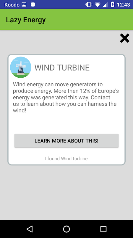 Lazy Energy uses your phones GPS, light and microphone sensors to help you identify the best types of green energy that you can harness.