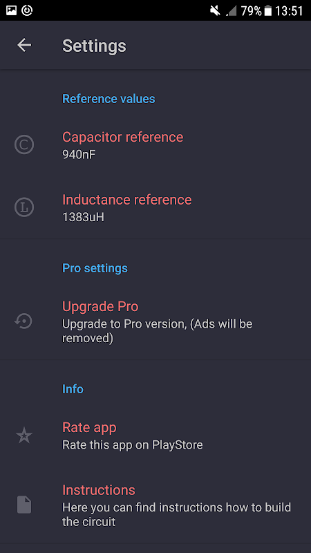 ใช้แอพนี้เป็นเรื่องง่ายคุณเพียงแค่สร้างวงจรขนาดเล็ก (สร้างง่าย) และเชื่อมต่อกับตัวเก็บประจุวงจรหรือตัวเหนี่ยวนำที่คุณต้องการวัดวางสมาร์ทโฟนของคุณไว้ใกล้จากวงจรมิเตอร์ LC นี้เลือกสิ่งที่คุณต้องการวัดความเหนี่ยวนำหรือตัวเก็บประจุแล้วกด ปุ่มเล่นในแอพ แอปจะตรวจจับความถี่เสียงจากกริ่งและจะแสดงค่า