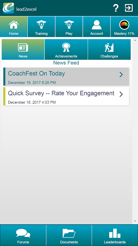 A mobile app and learning platform with built-in coaching for leadership modules and simulations. You can easily augment the content to meet your own training needs. Boost engagement by encouraging information sharing via forums and document libraries. Engage your employees with work place challenges, events, news and surveys. Lead2Excel is app central for your organization.