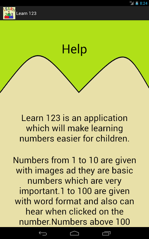 Learn 123 app will make learning numbers easier. Numbers are the basics in maths and also numbers are useful in day to day life.This app is designed in a simple manner so that any user can easily use it.