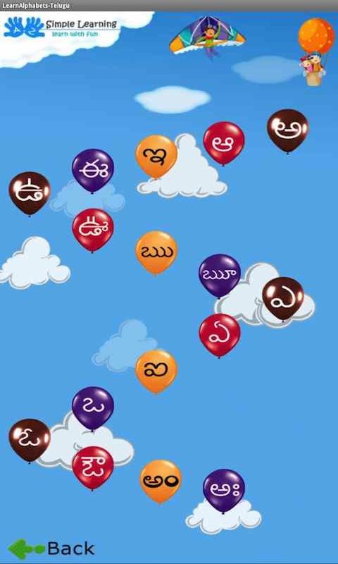 Learn Alphabets - Telugu is a very innovative and interactive way to give the first exposure of Telugu alphabets and numbers to your child. Children can experience the shape of alphabets and numbers using different colors & brushes. Children can play and have fun with popping the balloons and song.