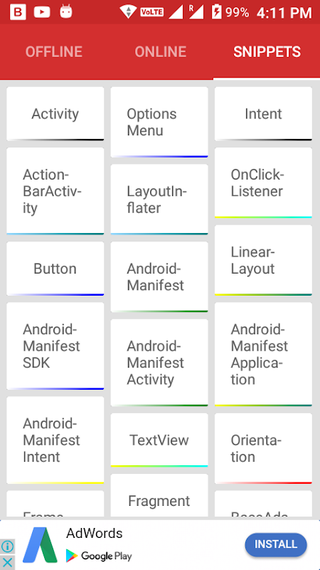 Learn Android app development offline is mainly divided into FIVE sections:-