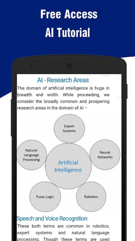 This App provides introductory knowledge on Artificial Intelligence. It would come to a great help if you are about to select Artificial Intelligence as a course subject. You can briefly know about the areas of AI in which research is prospering.