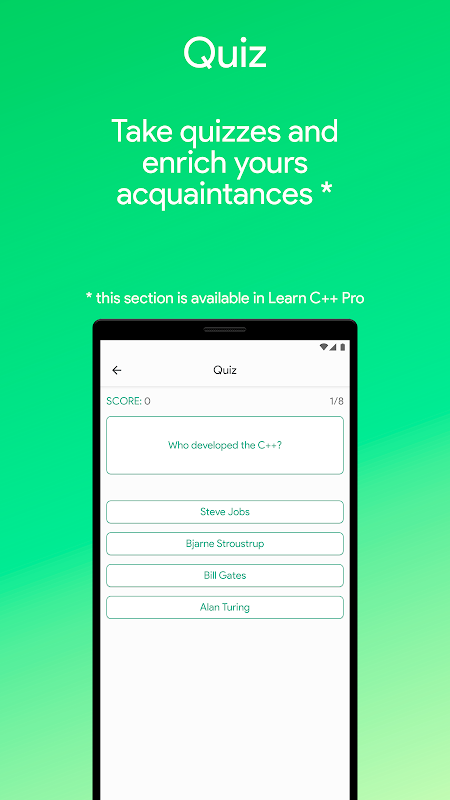 เรียนรู้ C ++ ได้รับการสนับสนุนโดยแท็บเล็ต Android ที่มี Android 5.0 ขั้นต่ำแนะนำให้ใช้อุปกรณ์ที่มีหน้าจอขั้นต่ำ 4.3 นิ้วแนะนำให้หมุนหน้าจอเพื่อการอ่านและทำความเข้าใจโปรแกรมที่ดีขึ้น