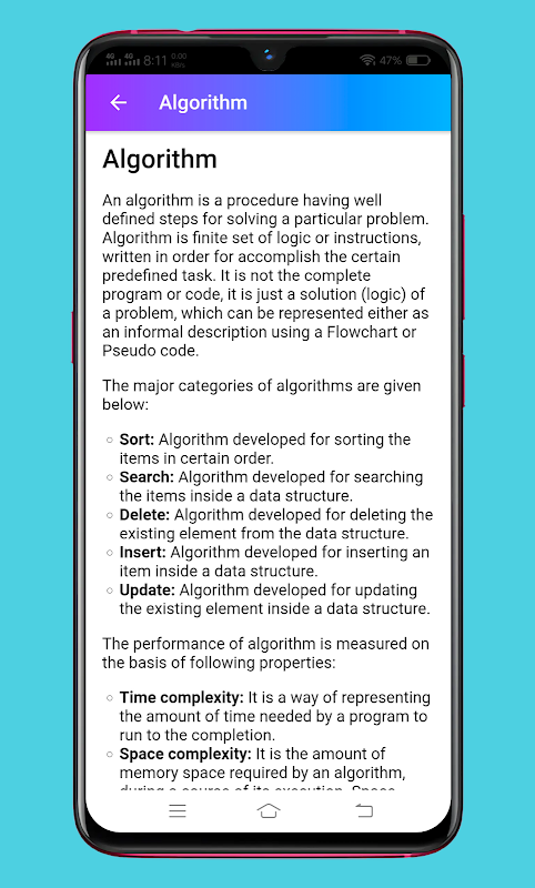 This App is designed for Computer Science graduates as well as Software Professionals who are willing to learn data structures and algorithm programming in simple and easy steps.