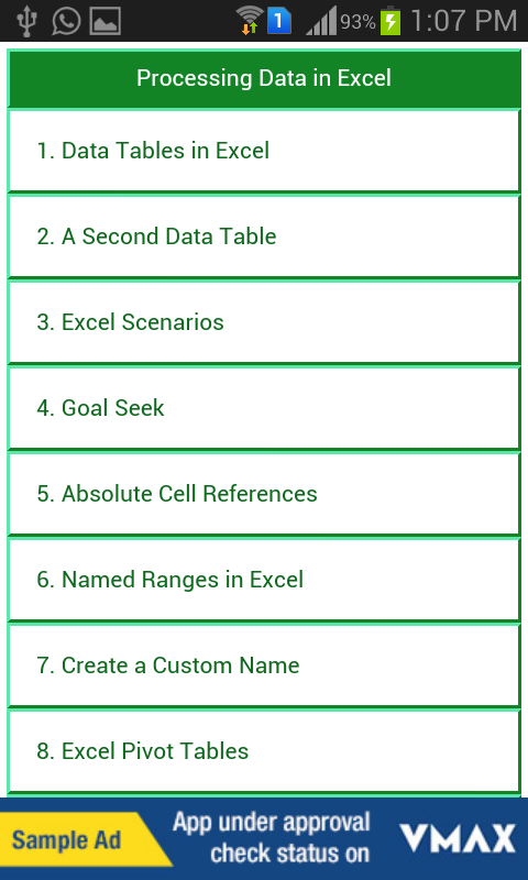 This app covers basic to advance concepts of Microsoft Excel. It mainly comprises tabs, groups of commands and worksheet. It is mainly used to store tabular data.