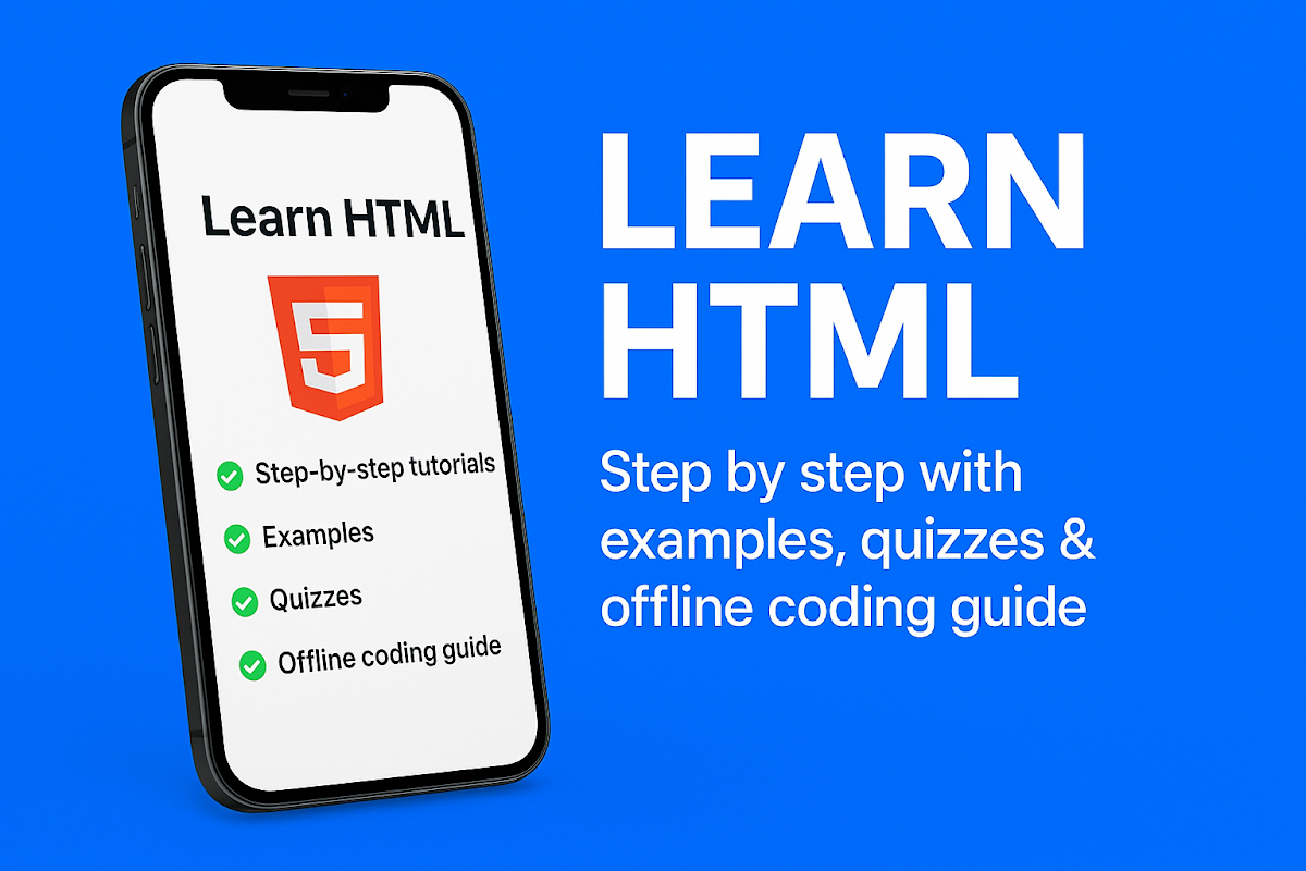 อยากสร้างเว็บไซต์แต่ไม่รู้จะเริ่มต้นตรงไหนใช่ไหม? 🚀 แอปนี้คือคู่มือฉบับสมบูรณ์สำหรับการเรียนรู้ HTML (HyperText Markup Language) ทีละขั้นตอน ออกแบบมาสำหรับทั้งผู้เริ่มต้นและนักเรียน ช่วยให้การเขียนโค้ดเป็นเรื่องง่าย สนุก และใช้งานได้จริง