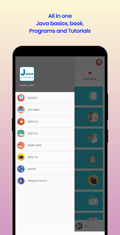 แอปพลิเคชั่นนี้จะช่วยให้คุณเรียนรู้ภาษาโปรแกรมจาวา แอปพลิเคชั่นนี้มีประโยชน์มากสำหรับผู้เรียนทุกประเภทแอปพลิเคชั่นนี้ครอบคลุม Java พื้นฐาน, Java Tutorials เต็ม, โปรแกรม Java, Java Quiz, แบบฝึกหัด Java, Java Glossary และส่วนใหญ่ของแนวคิดการเขียนโปรแกรมของ Java ซึ่งจะมีประโยชน์มากสำหรับคุณ เพิ่มเติมในการเขียนโปรแกรมจาวา