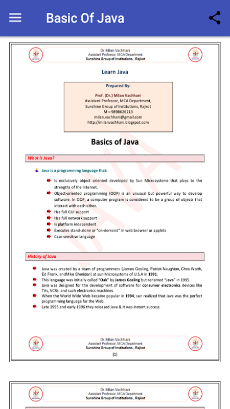 เรียนรู้แอป Java ช่วยให้คุณสามารถที่จะใช้หัวข้อของ Java ที่เกี่ยวข้องกับปริญญาโทการประยุกต์ใช้คอมพิวเตอร์ (MCA) และมันก็เป็นประโยชน์สำหรับนักเรียนของ GTU ที่ต้องการเรียนรู้จาวา มันไม่ได้ จำกัด อยู่ที่มหาวิทยาลัยว่ามีเพียง มันอาจจะเป็นประโยชน์ให้กับมหาวิทยาลัยอื่น ๆ นอกจากนี้ยังมี
