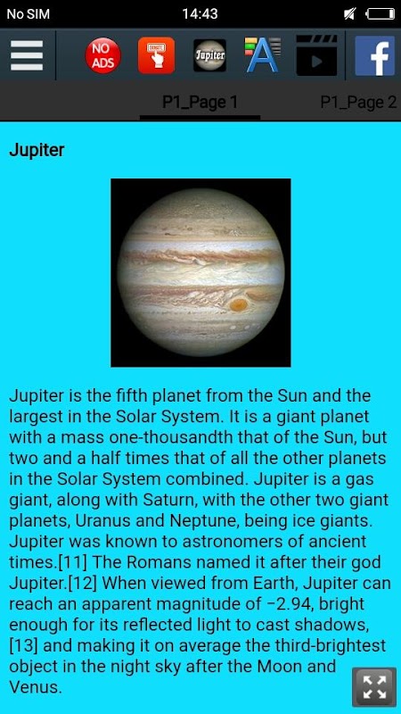 Jupiter is the fifth planet from the Sun and the largest in the Solar System. It is a giant planet with a mass one-thousandth that of the Sun, but two and a half times that of all the other planets in the Solar System combined. Jupiter is a gas giant, along with Saturn, with the other two giant planets, Uranus and Neptune, being ice giants. Jupiter was known to astronomers of ancient times.[11] The Romans named it after their god Jupiter.[12] When viewed from Earth, Jupiter can reach an apparent magnitude of −2.94, bright enough for its reflected light to cast shadows,[13] and making it on average the third-brightest object in the night sky after the Moon and Venus.