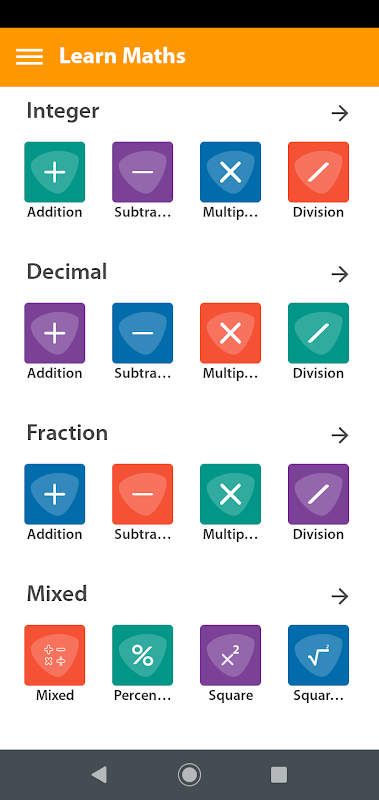 - Mixed Quiz - Advanced quiz, for kids who accomplished all four operation skills (add, subtract, multiply, divide) and tests with random question