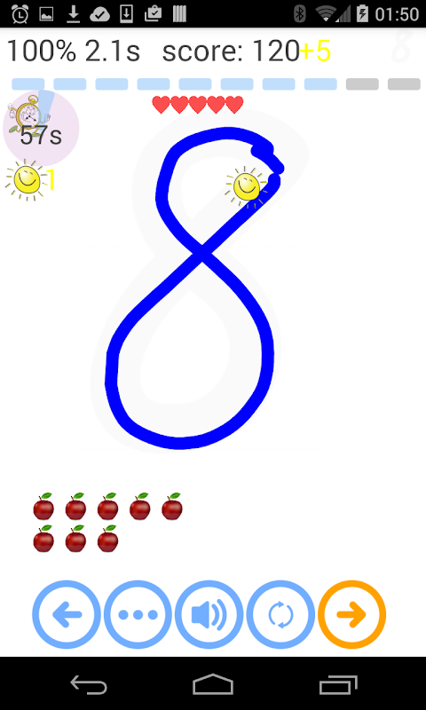 Digits and numbers tracing game that keeps children engaged and practicing through gamification of this boring task. The game includes 15 levels, each emphasizing various aspects of writing: accuracy, smoothness, speed of writing. Each digit comes with dynamic instructions. The writing accuracy, smoothness and speed are evaluated and children receive feedback.