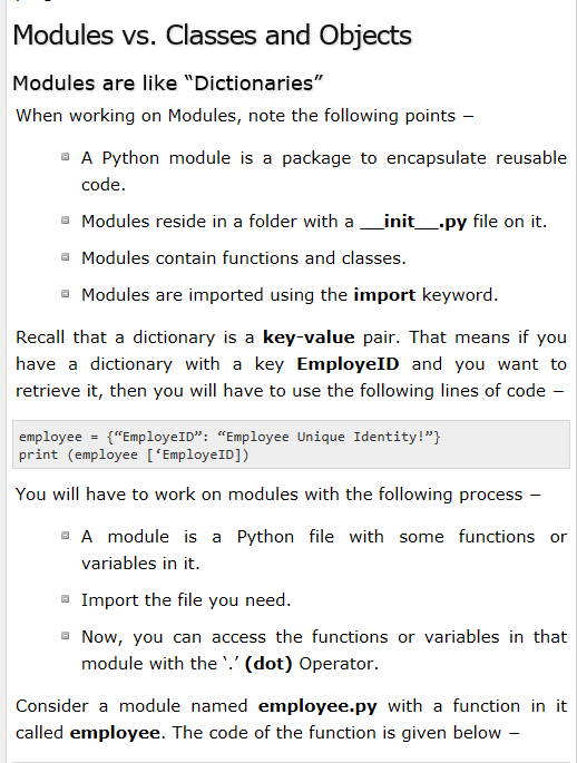 Object Oriented Python Quick Guide - Learn Object Oriented Python in simple and easy steps starting from basic to advanced concepts with examples including Introduction, Environment Setup, Data Structures, Building Blocks, Object Oriented Shortcuts, Inheritance and Polymorphism, Python Design Pattern, Advanced Features, Files and Strings, Exception and Exception Classes, Object Serialization, Python Libraries.