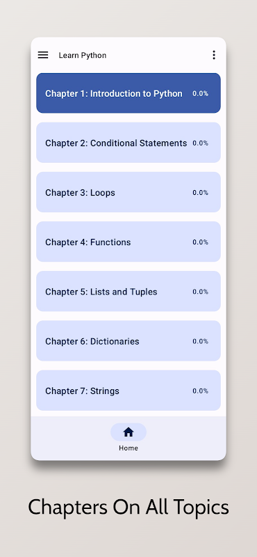 With its intuitive interface and user-friendly design, Learn Python provides an engaging and interactive platform for mastering the fundamentals of Python. Dive into a world of coding possibilities as you embark on a journey through ten meticulously crafted chapters. Each chapter covers a specific aspect of Python, gradually building upon your knowledge and helping you grasp the core concepts effortlessly.