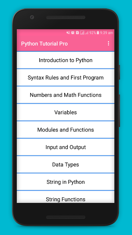 of this Python Programming Tutorial application.all the basic java of are explain very well and explain every basic Python Programming Tutorial