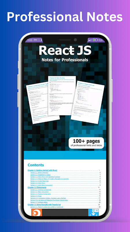 แอปครอบคลุมทุกอย่างตั้งแต่พื้นฐานของ React JS รวมถึงไวยากรณ์ JSX และโครงสร้างคอมโพเนนต์ ไปจนถึงหัวข้อขั้นสูง เช่น Redux, hooks และการแสดงผลฝั่งเซิร์ฟเวอร์