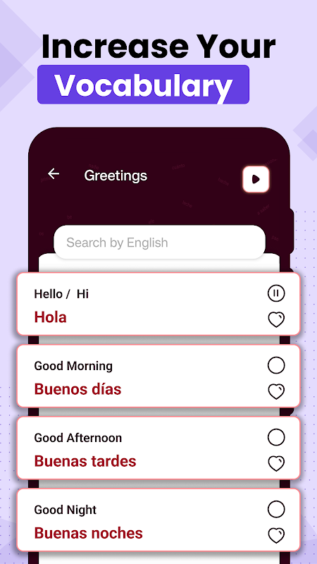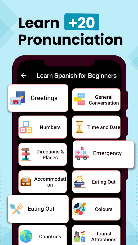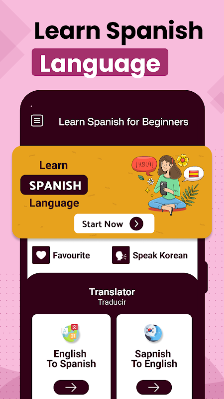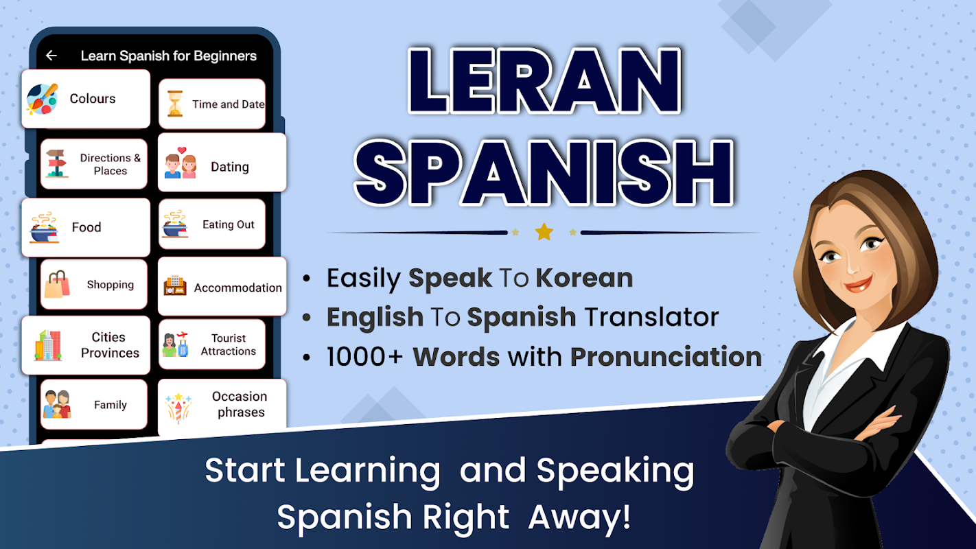 Learn Spanish เป็นหนังสือวลีภาษาสเปนบนมือถือที่ใช้งานง่ายซึ่งจะทำให้ผู้เยี่ยมชมสเปนและผู้ที่สนใจเรียนภาษาสเปนเป็นจุดเริ่มต้นที่ดีในภาษา