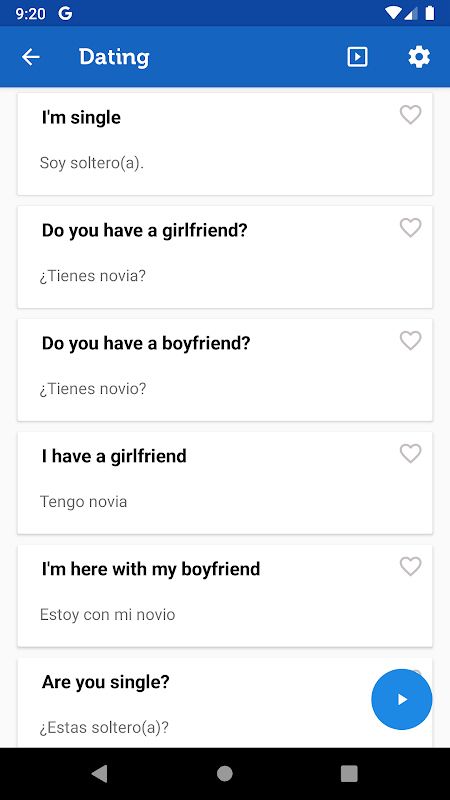 เลือกฟังคำศัพท์หรือประโยคสำคัญในการท่องเที่ยวหรือดำเนินชีวิตประจำวันในประเทศสเปน เหมาะสำหรับนักท่องเที่ยวหรือผู้ที่สนใจเรียนภาษาสเปน การใช้งานแบ่งออกเป็นหมวดหมู่ทั้งหมด 18 หมวด รวม 1,000 กว่า คำศัพท์และประโยค จะเลือกฝึกพูดตามเสียงที่ได้ยินหรือสามารถเปิดให้ชาวสเปนฟังก็ได้ เพิ่มความมั่นใจระหว่างการเดินทางให้กับตัวเอง