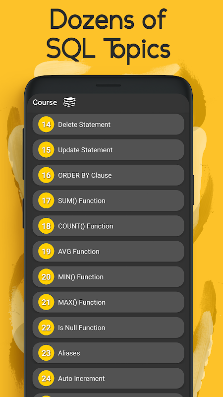เรียนรู้ SQL จากโทรศัพท์ของคุณแบบออฟไลน์ มีเนื้อหาการศึกษาตัวอย่างพร้อมวิดีโอในแอปพลิเคชัน