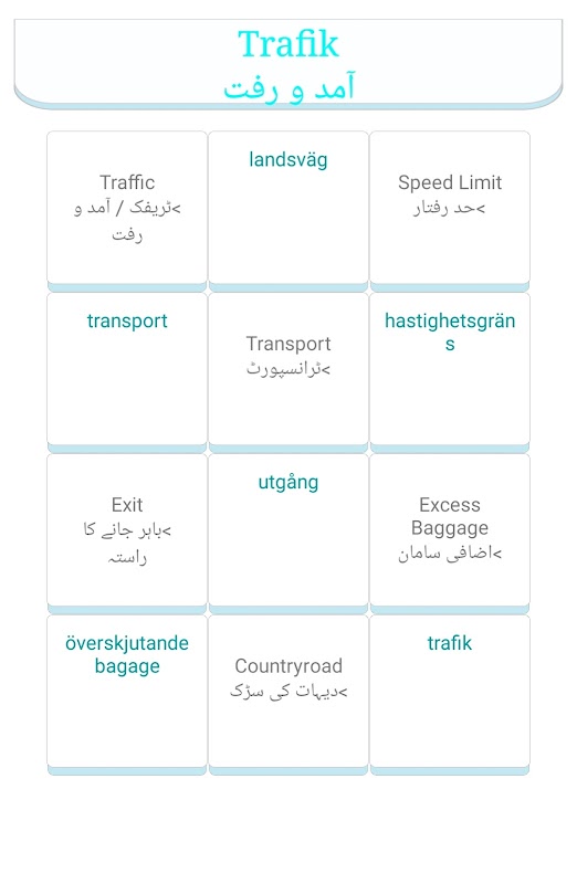 เรียนภาษาสวีเดนในภาษาอูรดู App เป็นแอพที่ออกแบบมาสำหรับการเรียนภาษาสวีเดนด้วยตัวคุณเอง วลีที่จำเป็นในชีวิตประจำวัน 45 หมวดหมู่พร้อมคำศัพท์มากกว่าพันคำที่ใช้ในสถานการณ์ที่แตกต่างกันพร้อมกับการแปลเสียงภาษาอังกฤษและภาษาอูรดู เหมาะสำหรับนักท่องเที่ยว นักท่องเที่ยว และนักเรียนที่กำลังศึกษาอยู่ที่โรงเรียน วิทยาลัย หรือมหาวิทยาลัย