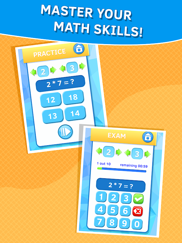 - เล่นเกมได้ไม่สิ้นสุดในโหมดแบบทดสอบตารางคูณ ย้อนกลับไปยังขั้นตอนการเรียนรู้ใดๆ ก็ได้เมื่อใดก็ได้ที่คุณต้องการ