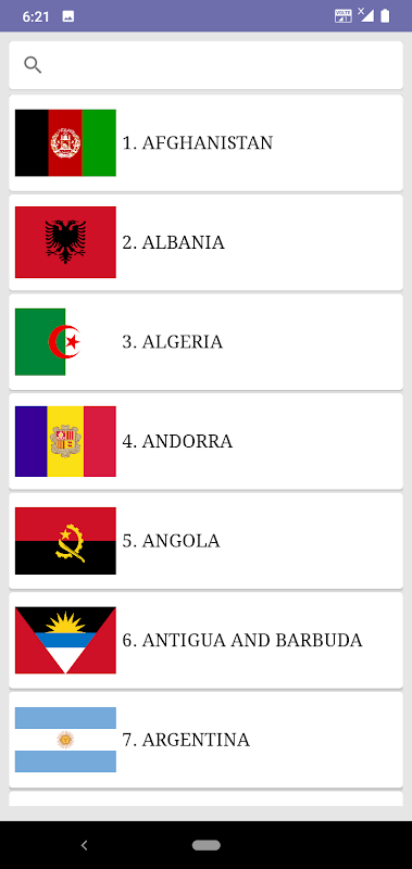 - ค้นหาตามชื่อประเทศ - ค้นหาธงต่างๆ ได้อย่างรวดเร็วด้วยการค้นหาในตัว