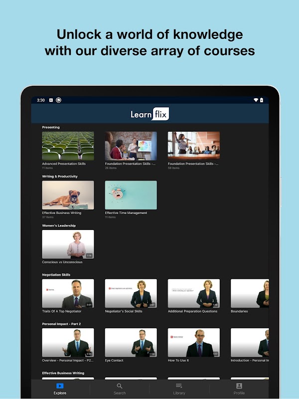 ปลดล็อกโลกแห่งความรู้ด้วยหลักสูตรอันหลากหลายของเรา ซึ่งออกแบบมาเพื่อเสริมพลังให้กับคุณทั้งในด้านส่วนตัวและด้านอาชีพ ไม่ว่าคุณจะเป็นมืออาชีพที่มีประสบการณ์และมีเป้าหมายที่จะปรับปรุงความเป็นผู้นำของคุณหรือเป็นบุคคลที่กระตือรือร้นในการเรียนรู้การสื่อสารที่มีประสิทธิภาพ แอปของเรานำเสนอประตูสู่ความเชี่ยวชาญที่ไม่มีใครเทียบได้ในราคาไม่แพง เจาะลึกบทเรียนที่น่าสนใจที่นำเสนอโดยผู้เชี่ยวชาญในอุตสาหกรรม เข้าร่วมแบบฝึกหัดเชิงโต้ตอบ และดูความคืบหน้าของคุณ