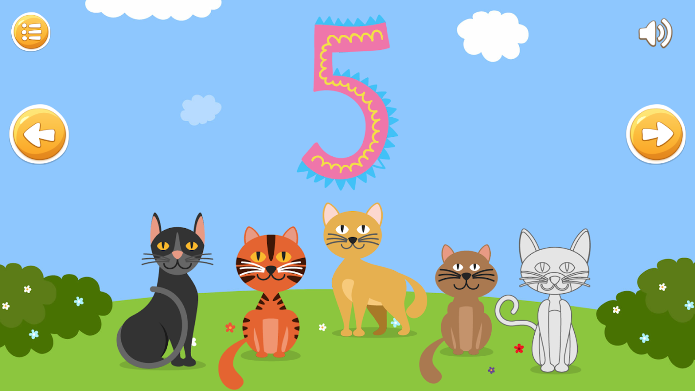 Simple educational game for kids which help them to learn numbers from one to ten with cure cats images.