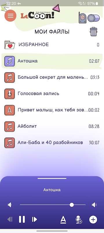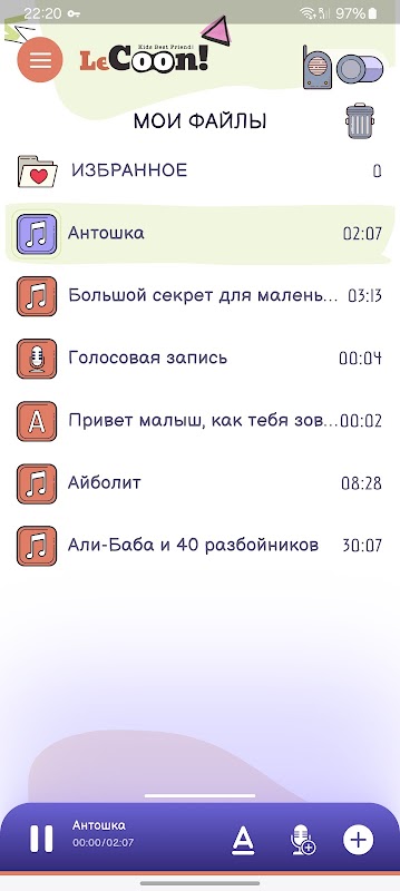 Friend Raccoon ผู้ช่วยและเบบี้มอนิเตอร์มัลติฟังก์ชั่นของเรา จะบอกเล่าเรื่องราว ร้องเพลง และสอนพฤติกรรมที่เหมาะสมในสถานการณ์ต่างๆ ทั้งหมดนี้เป็นไปได้ผ่านสมาร์ทโฟน ไมโครโฟน และลำโพงของคุณ รวมถึงความสามารถในการส่งเสียงข้อความใดๆ ก็ได้ ไฟล์เสียงหรือข้อความใดๆ ที่คุณพบบนอินเทอร์เน็ตสามารถเล่นได้โดย Raccoon คุณยังสามารถสื่อสารกับเพื่อน ๆ โดยใช้เสียงของแรคคูนได้ด้วยการออกเสียงข้อความที่คุณเขียนใน Messenger คุณสามารถเขียนข้อความที่แรคคูนจะพูดและเล่นเพื่อคุณและเพื่อนของคุณ แรคคูนของเรารู้ประมาณ 40 ภาษาและสามารถอ่านข้อความเป็นภาษาอังกฤษ ฝรั่งเศส รัสเซีย เยอรมัน สเปน อิตาลี ยูเครน และอื่นๆ อีกมากมาย