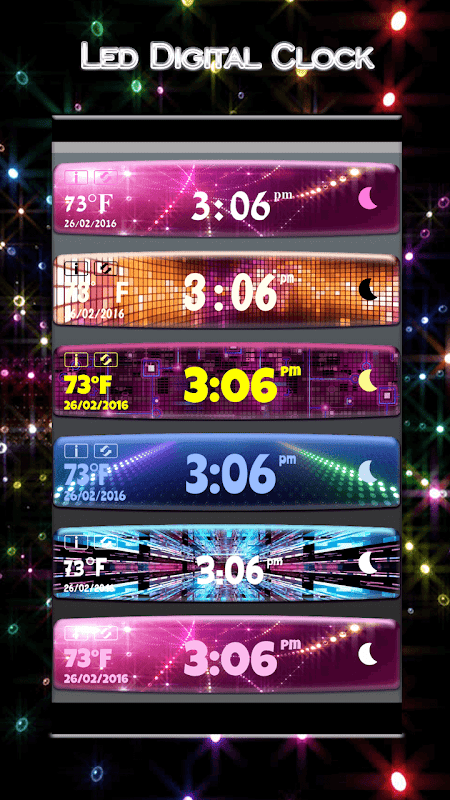 คุณพร้อมที่จะใส่สไตล์นำบางอย่างเกี่ยวกับโทรศัพท์ของคุณ? ถ้าคุณเป็นดาวน์โหลดฟรีนาฬิกาดิจิตอลสำหรับหน้าจอที่บ้านและสนุก! เปิดไฟ LED และการตกแต่งหน้าจอของคุณด้วย "นาฬิกาดิจิตอลฟรี"! วิธีนี้เป็นวิธีที่ทันสมัยวิธีการปรับแต่งเดสก์ทอปมือถือของคุณ! เปลี่ยนผิวพื้นหลังนำเวลาที่คุณต้องการทุกแบรนด์ใหม่ Widget นาฬิกาดิจิตอล ออกแบบที่มีสีสันหลายของนาฬิกาจะตกแต่งมาร์ทโฟนของคุณในวิธีที่เหลือเชื่อ! สำรวจการทำงานทั้งหมดนี้ "นาฬิกานำ"! ทราบเกี่ยวกับสภาพอากาศล่าสุดและใช้นาฬิกาโลกนี้สำหรับแท็บเล็ต หากคุณได้รับการค้นหานาฬิกาที่ทันสมัยนี้ app "นาฬิกาใหม่" จะตอบสนองความอยากของคุณทั้งหมด เวลานี้ "นำ App เครื่องมือ" และแสดงความรู้สึกของสไตล์ เพียงคลิกที่ดาวน์โหลดได้ฟรีและให้ตัวเองคอลเลกชันที่น่าตื่นตาตื่นใจของนาฬิกานำขนาดและรูปร่างที่แตกต่างกัน เพียงแค่เลือกสีผิวนาฬิกาและปล่อยให้โทรศัพท์ของคุณเป็นประกายด้วยสีดำ, สีขาว, สีม่วงและสีเขียว