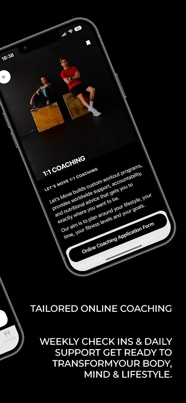 ตัวเลือกที่สามของเราคือการฝึกสอนแบบ 1:1 ตามความต้องการเฉพาะบุคคล ตัวเลือกนี้สำหรับใช้ที่บ้านหรือในยิม ตั้งแต่ระดับเริ่มต้นไปจนถึงระดับสูง สิ่งนี้ได้รับการปรับให้เหมาะกับเป้าหมายของคุณอย่างสมบูรณ์ ทุกโปรแกรมเขียนขึ้นโดยผู้ฝึกสอนผู้เชี่ยวชาญของเราเพื่อมอบประสบการณ์ที่ไม่เหมือนใครให้กับคุณ หากคุณมีเป้าหมายด้านความสวยงาม เป้าหมายด้านความแข็งแกร่ง อาการบาดเจ็บหรือข้อจำกัด หรือเพียงแค่ต้องการปรับปรุงสมรรถภาพร่างกาย Let's Move จะแนะนำคุณในทุกขั้นตอน คุณจะได้รับเป้าหมายทางโภชนาการของคุณเองและโค้ชที่จัดสรรด้วยการเช็คอินทุกสัปดาห์ คุณสามารถติดต่อโค้ชของคุณทุกวันหากมีคำถามใด ๆ ที่คุณอาจมี รวมทั้งคุณจะได้รับข้อเสนอแนะทางประวัติออนไลน์และแบบฟอร์มไดอารี่ซึ่งคุณสามารถติดตามข้อมูลทั้งหมดของคุณได้ เราจะสนับสนุนคุณ กระตุ้นคุณ และที่สำคัญที่สุดคือแจ้งเคล็ดลับยอดนิยมสำหรับการมีวิถีชีวิตที่มีสุขภาพดี เตรียมตัวให้พร้อมเพื่อก้าวข้ามขีดจำกัดและสัมผัสกับการเปลี่ยนแปลง หากต้องการเข้าถึงตัวเลือกนี้ โปรดกรอกแบบฟอร์ม PAR-Q และจองผ่านแอปของเรา