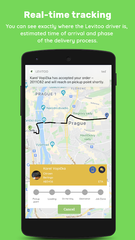 You can track your delivery in the mobile or web app, which will ensure you a perfect overview in real time whenever you need. It´s here for you 24/7. Both sender and recipient can track current informations about the delivery in the app by one click