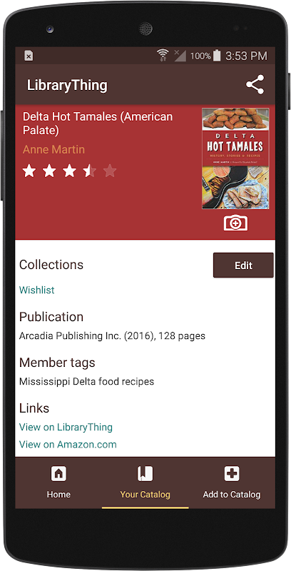 แอปพลิเค LibraryThing ช่วยให้สมาชิก LibraryThing แคตตาล็อกและเรียกดูคอลเลกชันของพวกเขา LibraryThing จะเน้นในหนังสือ แต่คุณสามารถเพิ่มสื่อมากที่สุดรวมทั้งหนังสือดีวีดีและซีดี LibraryThing อาศัยข้อมูลจาก Amazon และมากกว่า 65 ล้านระเบียนห้องสมุด