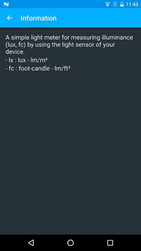 เครื่องวัดแสงเป็นแอปง่ายๆสำหรับวัดความสว่าง (lux, fc) โดยใช้เซ็นเซอร์วัดแสงของอุปกรณ์ของคุณ